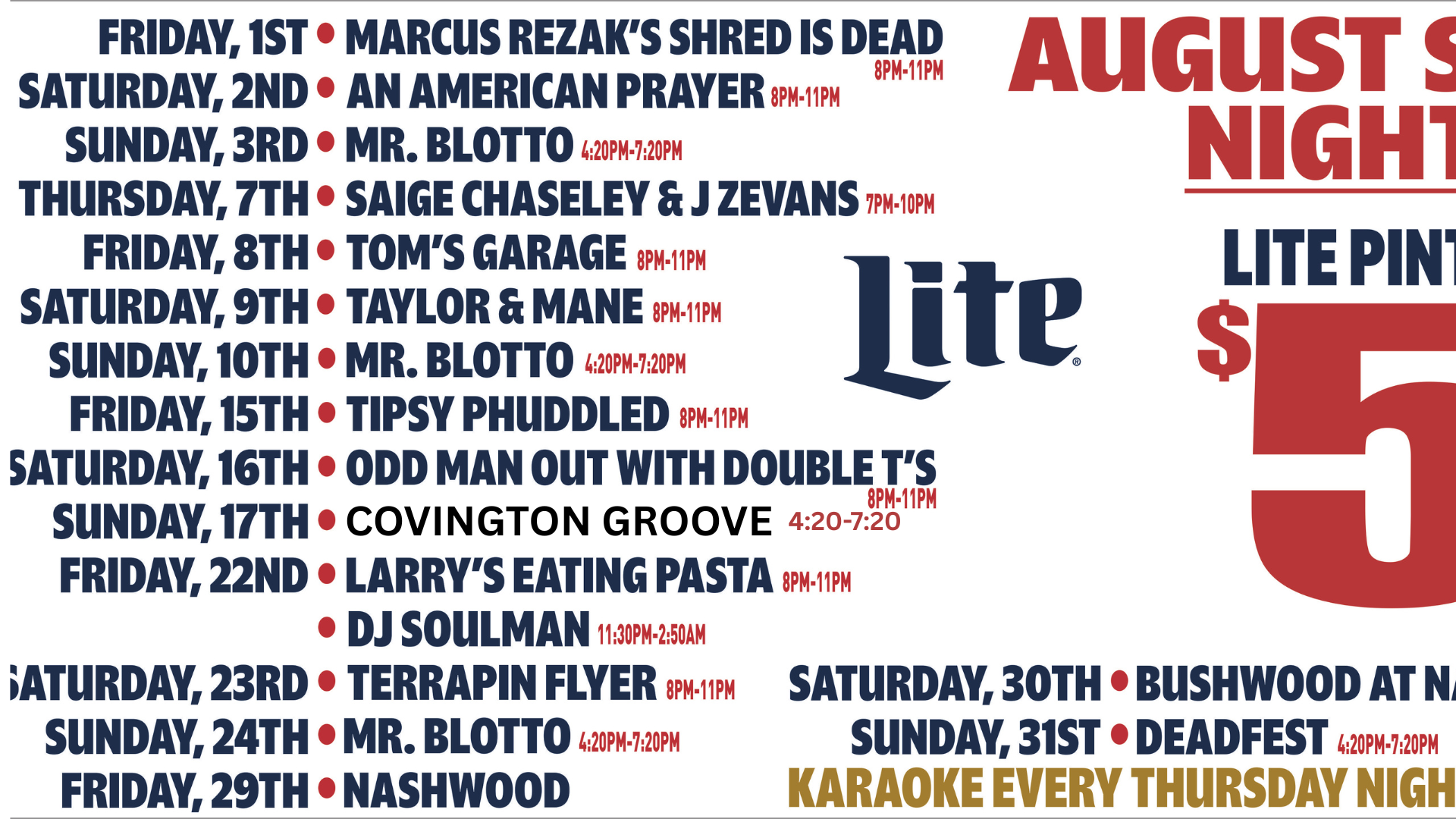 A bar with a great music scene. Outdoor stage is big and there is good schedule during the warm seasons. Quick access from highway 41 with ample parking.